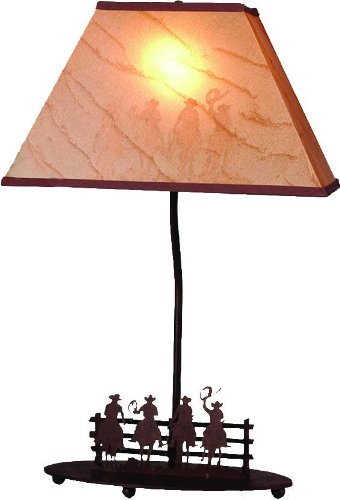 Beautiful & durable, Lazart® designs add style & elegance to any decor. Created by renowned artists, each design captures your attention & sparks your imagination. This 20" Roundup Table Lamp captures these American icons of the west at work. The steel base displays a silhouette over 9" long showing cowboys 4 wide working to round up the herd. Each decorative design is precision cut using Lazart's® laser cutting process and then coated with a natural Rust finish that offers contrast and brings the design to life. Each decorative design is precision cut using Lazart's® laser cutting process and then coated with a natural Verdigris/Rust finish that brings the design to life. The steel base displays a silhouette over 9" long and the unique 9-1/2"x 5" shade accentuates the overall design by displaying a similar image when lit. Sure to be a conversation piece in any home, this lamp adds to any decor diffusing light from a 60-watt bulb (not-included) into a soft translucent glow. The steel base has rounded rubber feet to avoid scratching and the steel construction makes this lamp perfect for busy areas. This lamp measures approximately 20" high with a 9-1/2"x 4-1/2" base and comes with a 6-1/2' power cord for easy placement. The shade measurese 13-1/2" wide x 8" high x 4-1/2" deep. The light socket has a standard pull chain for on/off and you can add one of many great Lazart® Pulls available in identical & complimentary designs. Every Lazart® design is precision cut into American cold rolled steel using Lazart's® laser cutting process and then coated with a remarkable & durable finish. Final assembled product is imported. Lazart® Lamps are UL and CUL approved and built to last.